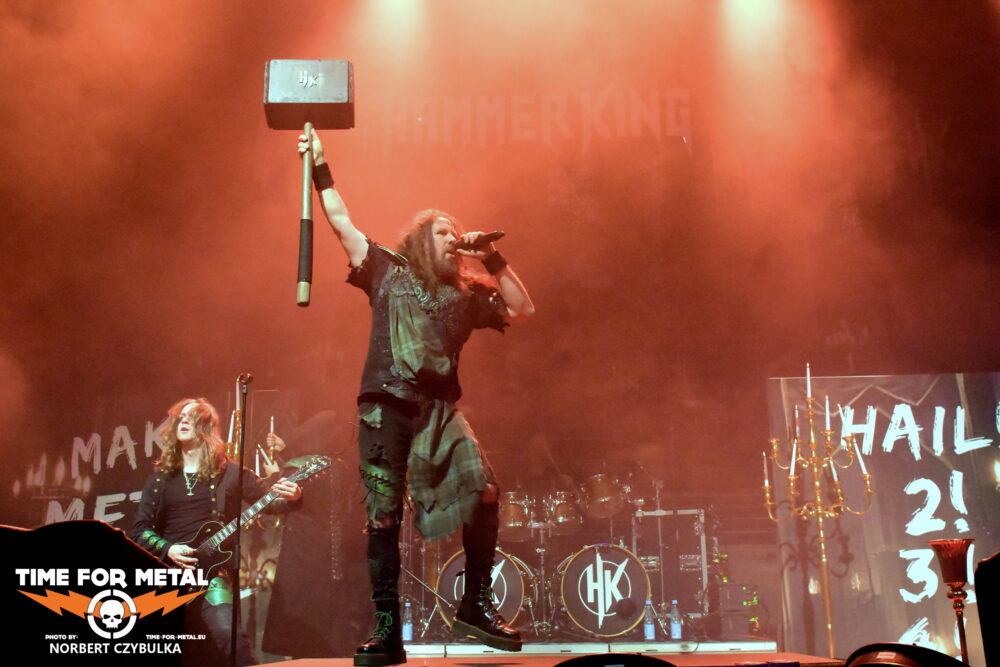 Hammer King ist eine 2015 in Kaiserslautern, Deutschland, gegründete Heavy- und Power-Metal-Band, die schnell mit hymnischen, klassischen Metal-Hymnen und einem stark Fantasy-inspirierten Band-Universum bekannt wurde. Gegründet wurde die Gruppe von Titan Fox V (Gesang & Gitarre) und Gino Wilde (Gitarre) mit ursprünglichen Mitgliedern wie K.K. Basement und Dolph Aidan Macallan. Über die Jahre folgten mehrere Alben, die Erfolge feierten. Ihr 2024er-Album König Und Kaiser erreichte Platz 16 der deutschen Charts. Seit August steht mit Make Metal Royal Again ein neues Studioalbum in den Regalen, das heute Hauptbestandteil der Show ist. Die aktuelle Besetzung: Titan Fox V (Gesang & Gitarre), Gino Wilde (Gitarre), Günt von Schratenau (Bass), Count Ivo Shandor of Shandoria (Schlagzeug). Sie „geben Gold den Armen“, werfen Münzen ins Publikum. Es sind zwar nur eigene Prägungen mit dem Bandlogo aus Kunststoff, es sollen aber begehrte Sammlerstücke sein, da man sie nur auf den Konzerten „fangen“ kann.