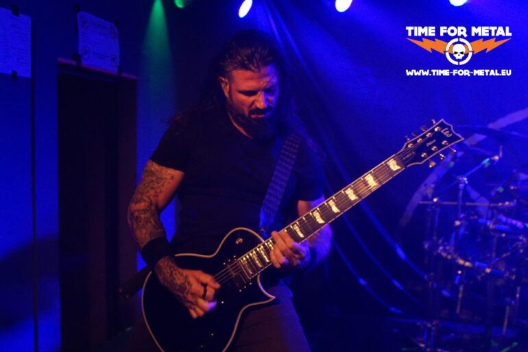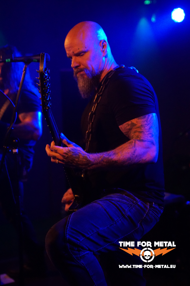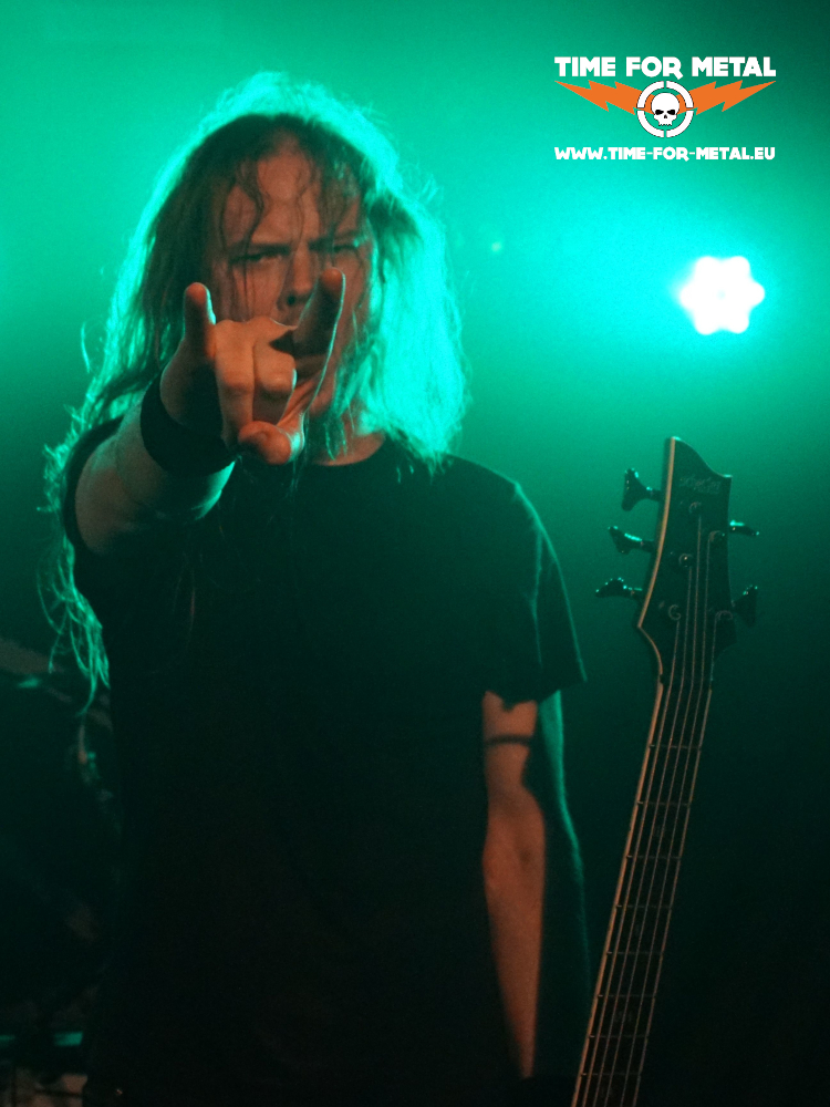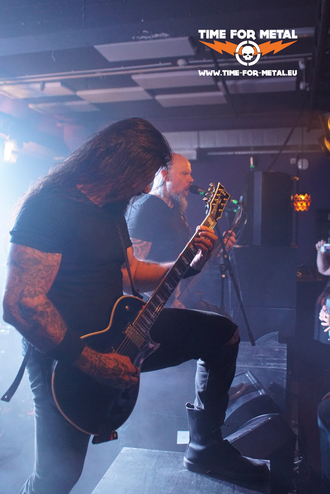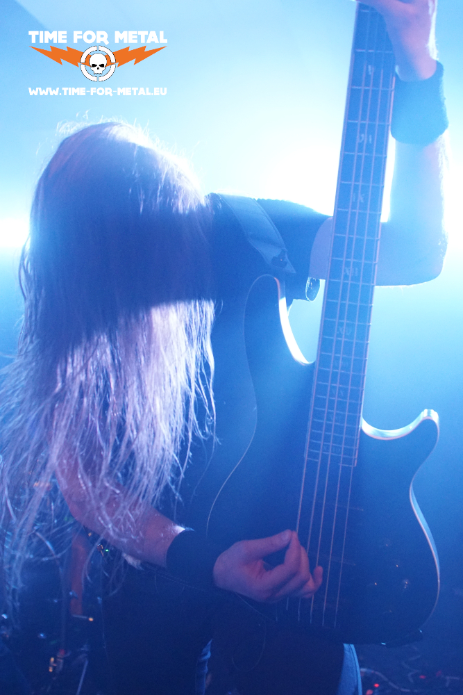 Bei einer etwas längeren Pause sammeln sich alle Protagonisten, um im Anschluss für Wolfheart die Stage zu entern. Mit dabei, bei seinem dritten Streich, der unermüdliche Vagelis Karzis, der bei den Finnen seit fünf Jahren die zweite Gitarre neben Mastermind Tuomas Saukkonen beackert. Tuomas und Vagelis sind in den letzten Jahren wirklich zusammengewachsen und haben sichtlich Spaß, jetzt mit Wolfheart zum finalen Streich anzusetzen. Mit am Start ist Lauri Silvonen, der auch bei Bloodred Hourglass aktiv ist. Hinter der Schießbude hat Joonas Kauppinen Platz genommen, um mit Ancient Cold den Auftritt anzustimmen. Es folgen Ghosts Of Karelia und The King. Die Stimmung ist blendend und die ostwestfälischen Headbanger lassen sich nicht lumpen. Voller Einsatz auf und vor der Bühne ist garantiert, mittendrin Titel wie Carnivore oder Valkyrie, die lautstark angestimmt werden. Cold Flame und Grave setzen Nadelstiche. Die Vocals von Tuomas dröhnen durchs KulturWerk. Mit dem siebten Album im Schlepptau, Draconian Darkness, bleiben keine Wünsche unerfüllt. Alle Epochen werden berücksichtigt und bekommen ihren angemessenen Platz. Dreizehn Titel haben die Skandinavier vorbereitet und der Fan-Liebling The Hunt wird dabei nicht vergessen. Stimmungsvoll und frostig erhält der Winter vorzeitigen Einzug in Herford. Donnernd verabschieden sich die Musiker mit The Hammer und lassen zum Abschluss mit Blast Beats und bissigen Riffs die Muskeln für sich spielen.