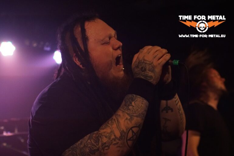 Den Anfang machen Full House Brew Crew, die pünktlich beginnen. Kurzfristig wurde der Start ca. eine Stunde nach vorne verlegt. Das haben viele, aber nicht alle Besucher mitbekommen. Das Interesse kann sich jedoch sehen lassen und im Club-Feeling kommt auch so Stimmung auf. Die griechischen Groove-Metal-Recken Full House Brew Crew haben für den 06.02.2026 ihr neues Studioalbum Glasgow Grin über ROAR angekündigt und wollen auf dieser Tour neue Anhänger generieren. Im Quartett bilden sie jedoch die Exoten. Nichtsdestotrotz laufen Tracks wie Black Flag, Fake oder auch No Gods, No Chains wohlklingend aus den Boxen. Eine besondere Zeit für Vagelis Karzis, der an jedem Abend gleich dreimal auf der Bühne steht. Wer Full House Brew Crew noch nicht auf dem Schirm hatte, sollte wissen, dass die Südeuropäer Spaß machen und technisch in die Richtung von Rotting Christ gehen. Schluss ist mit Bleed nach sechs Kompositionen, die allesamt einen positiven Eindruck hinterlassen.