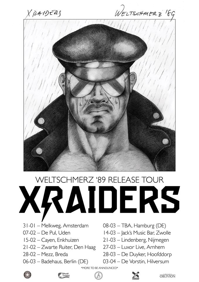 Weltschmerz ’89 kombiniert eine Vielzahl von Einflüssen von Turbonegro und Iron Maiden über Early-Soilwork bis hin zu Dillinger Escape Plan – eine Inyour-Face-Collection aus purem Rock ’n‘ Roll – aggressiv und authentisch. Du suchst eine schnelle Lösung für deinen Weltschmerz? Hör auf zu heulen und schnapp dir deine Lederjacke und nimm die X Raiders Ausfahrt!